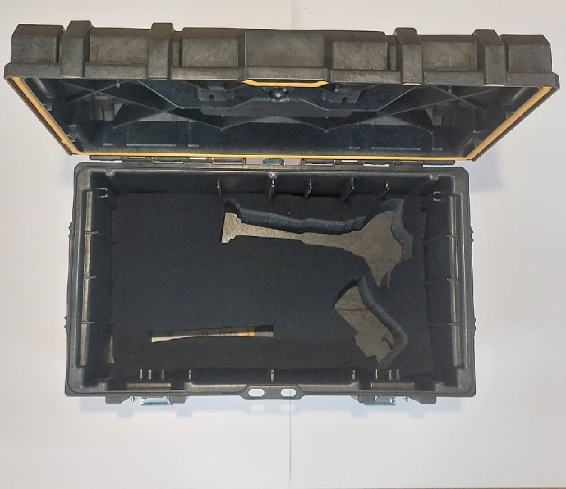 This foam inlay fits in the DeWalt 1-70-322 DS300 Toughsystem Box It can house an Combi Drill (DCD796), Grinder (DCG405) and a Circular Saw (DCS391/DCS565).